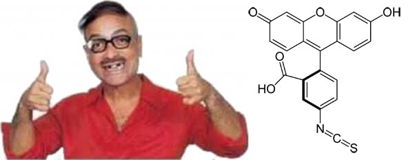 Basicamente, a técnica consiste na conjugação de fluoróforos (como FITC, CyX ou AlexaXXX) diretamente a anticorpos purificados (ou qualquer outra proteína) por meio de uma reação química que liga o fluoróforo a lisinas presentes na superfície da proteína. A reação é bem simples e pode ser feita em qualquer laboratório. As vantagens de dominar essa técnica são óbvias, e incluem: